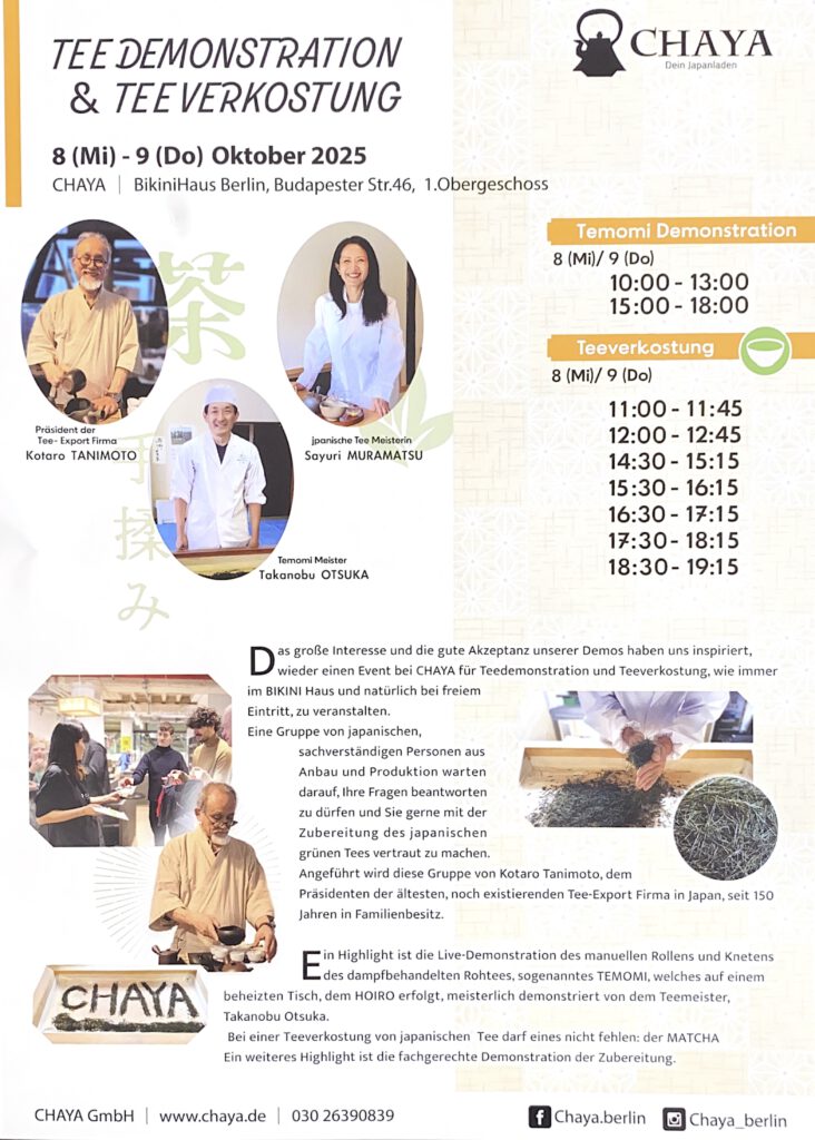 Tea tasting and Tea demonstration at CHAYA, in Bikinihaus. Free of charge.