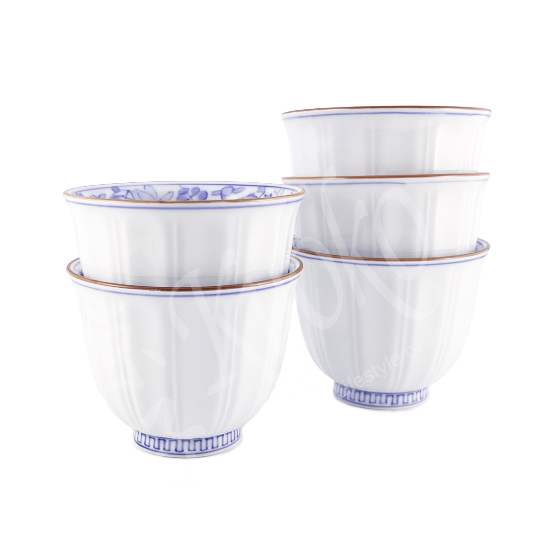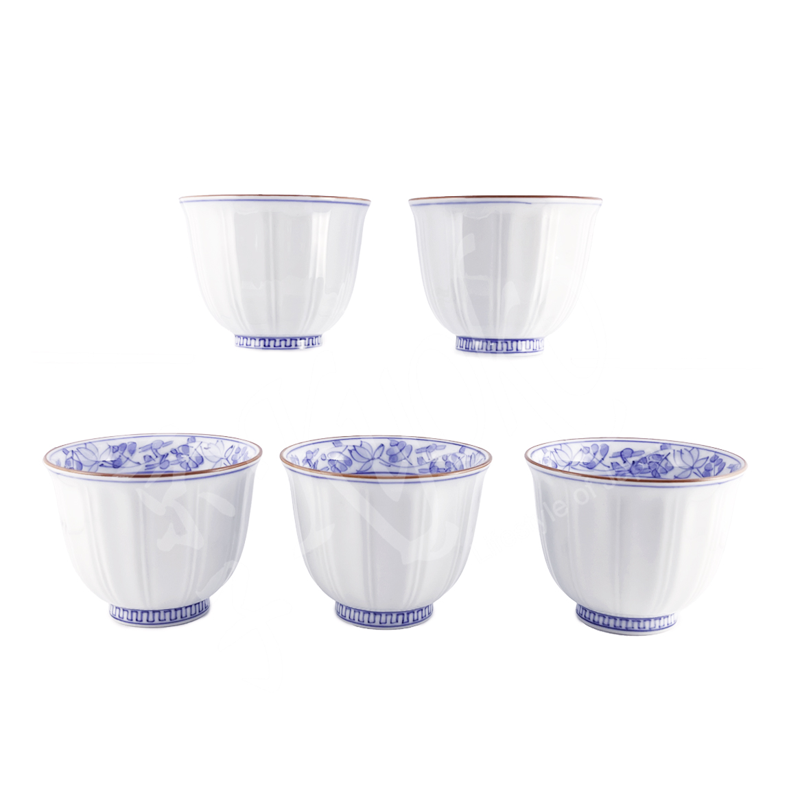 10-107: 5 Teecups im Set Korin Fuchi Karakusa, weiß, ø = 8 cm; H = 6,5 cm