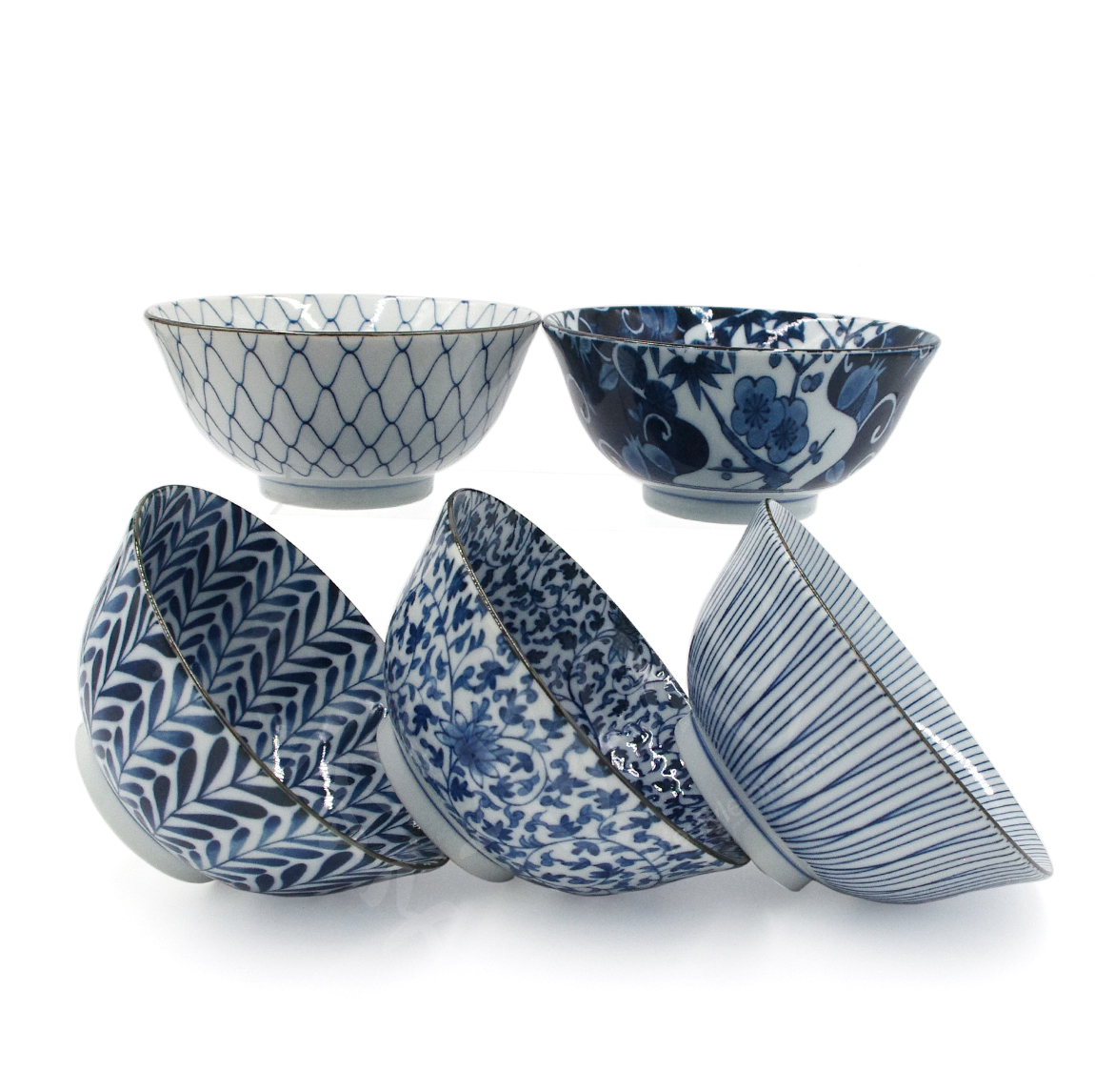 20-526 : Schüsselset Ai Egawari Tayo, 5-fach sort., weiß/blau, ø = 15,5 cm; H = 7,2 cm