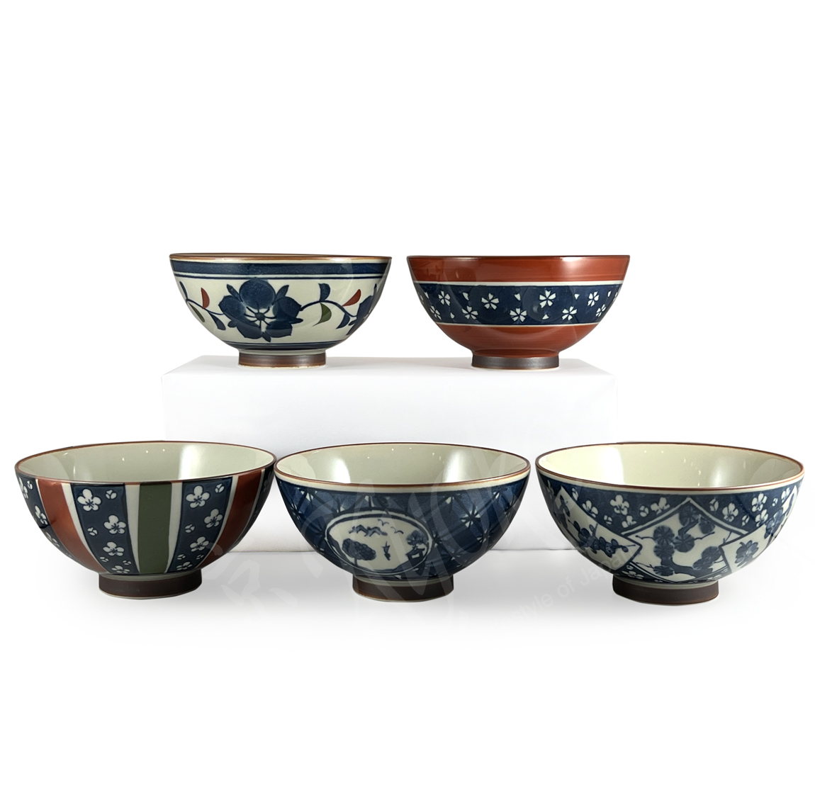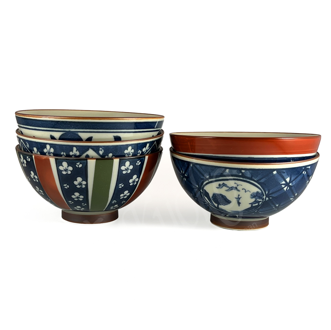 20-696: Reisschalen-Set Kosome, 5-fach sortiert, blau, ø = 11,5 cm; H = 6,5 cm