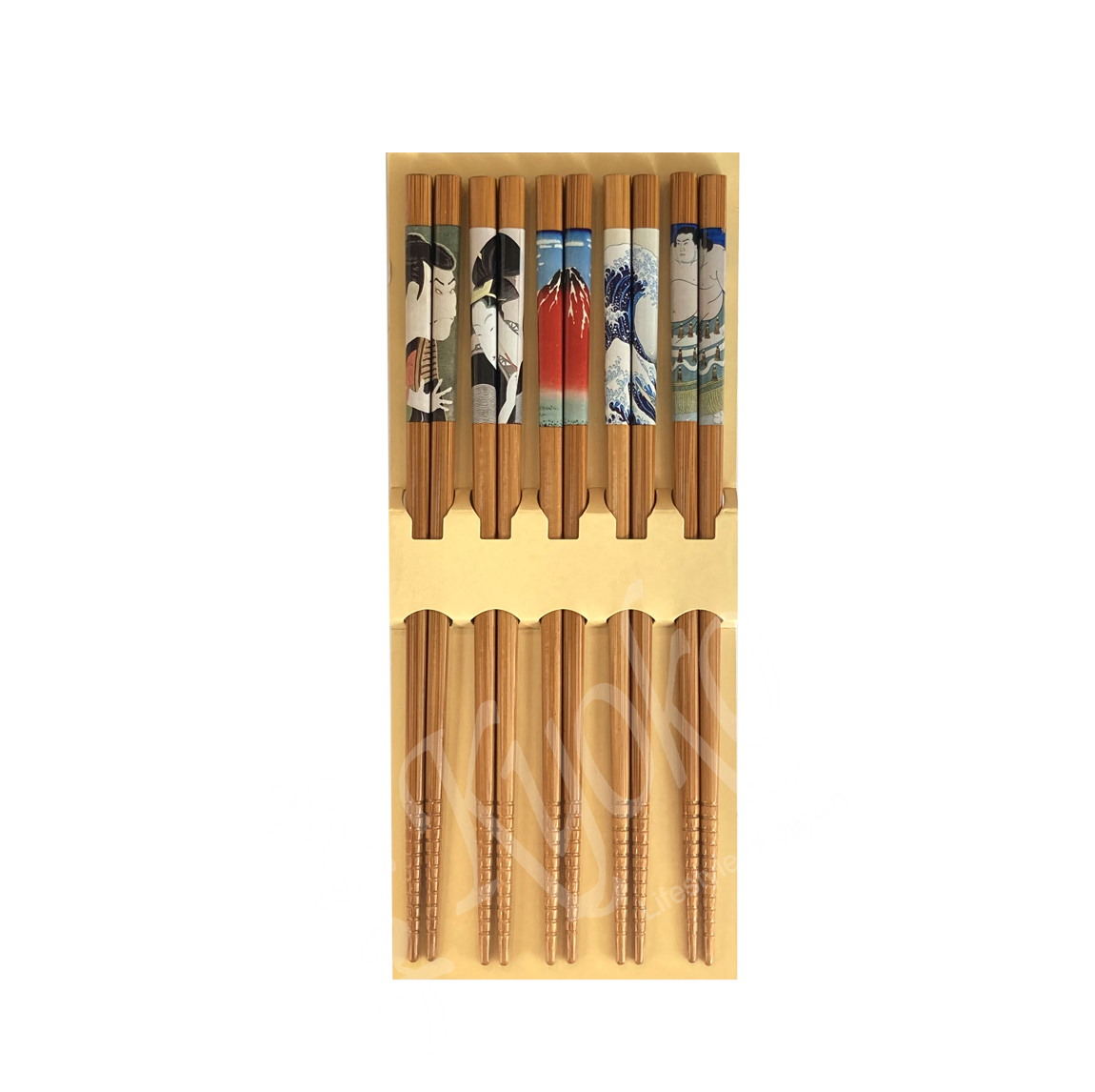 22-120 : 5 Paar Essstäbchen Bambus, 5-fach sortiert