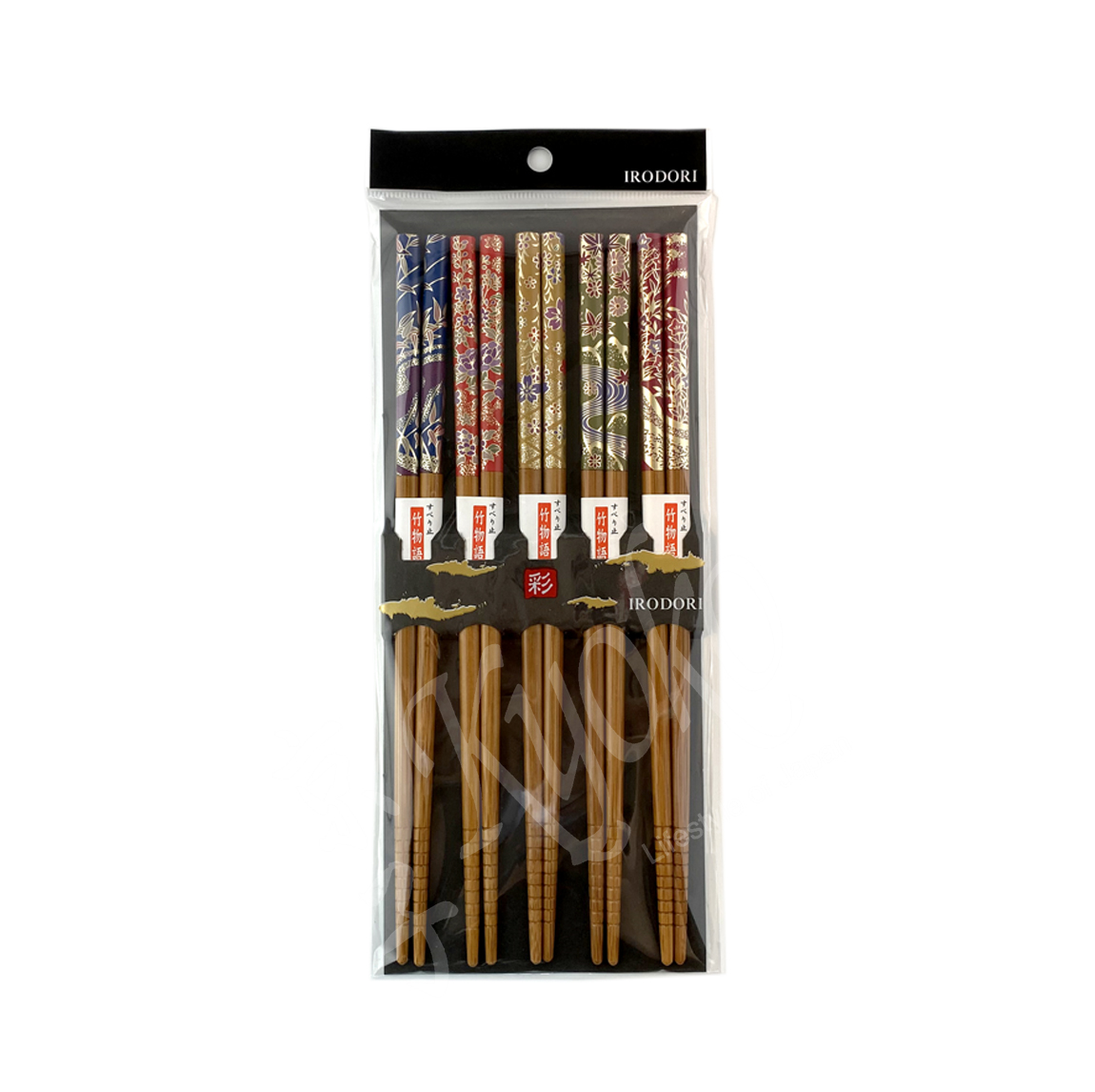 22-135 : 5 Paar Essstäbchen Hana, Holz, lackiert, 5-fach sortiert, 22,5 cm