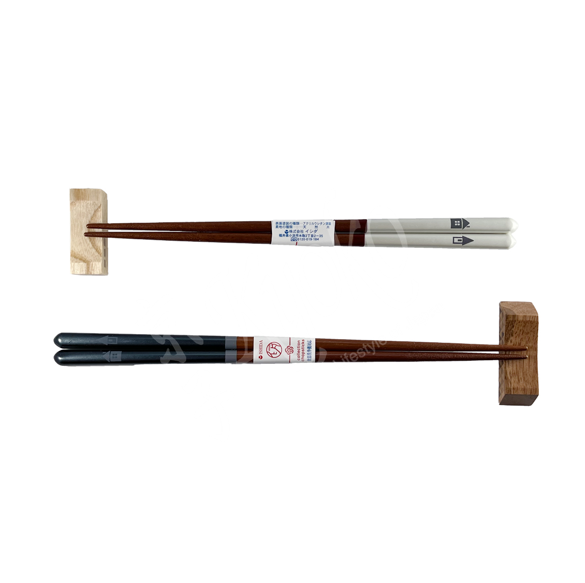 22-124 : 2:2 Hashi-Set Pair, Holzstäbchen lackiert, Holzstäbchenbank, schwarz / weiß