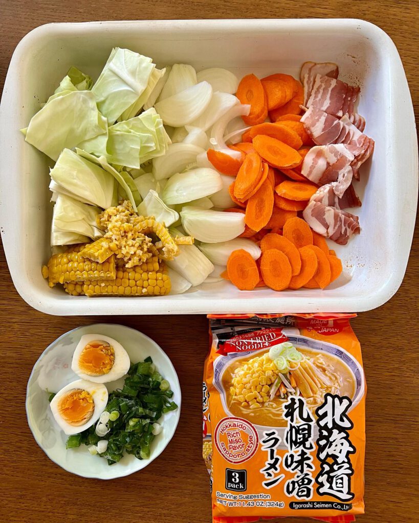 4. Serve with toppings as desired (for example, stir fried vegetables, boiled eggs, sweet corns…)
